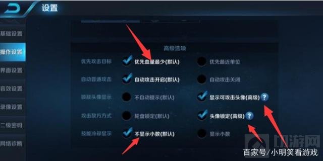 第三个就是攻击目标优先级。很多玩家为了方便都是开启的自动优先攻击目标,这一点的确是很方便,但是在比赛中我们针对的英雄不同,也可以适当的换一下攻击类型,这样能更加快速的解决掉目标。大家可以去试一试。