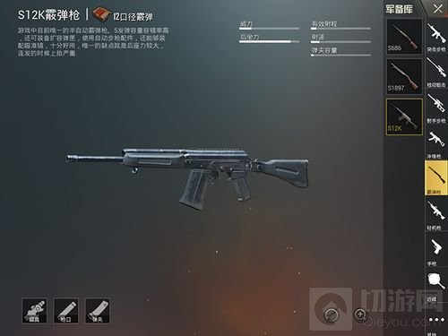 两把霰弹枪伤害都非常高,但是S686伤害略高一点,对比之下可以看见S686射程远,后坐力较小。射速由于纯手动原因官方给出S12K射速较快,但是在实际运用中S686射速很快并且稳定,S12K因为多发的原因让众多玩家感觉射速较快,实际两把枪射速没有明显差别。S12K在弹夹容量上有绝对优势,一对多的情况S12K效果会好很多。