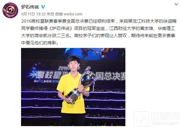以上就是切游小编给大家带来的全国总冠军徐迦楠专访,掌握最新鲜有趣的炉石资讯,了解更多实用的卡组攻略,敬请关注切游网炉石传说专区。