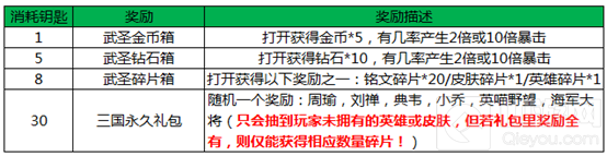 活动期间,4级以上玩家每天登录游戏可以获得武圣钥匙*1