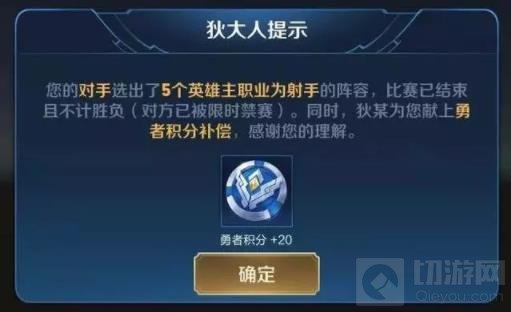 S14赛季新增强制重开对局功能,在遇到一方阵容极不合理的情况,才会触发对局强制重开功能,极不合理的阵容暂时只包括五个法师或射手。导致重开的一方将会受到匹配时长限制,而受到影响的另外一方,可获得20勇者积分的补偿,不过这触发重开的情况还是很少的。