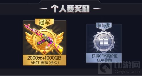 2、个人赛奖金2000元,1000QB,1把橙色武器(永久)