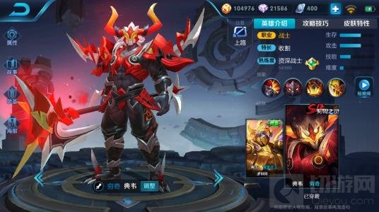 大家都熟悉的疯狗典韦,一身金灿灿的板甲一看就很扛打,板甲之下还穿了一层锁子甲,手持大铁戟,伤害也非常高。