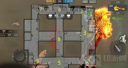 1点所在位置是狙击枪封锁狙杀右路的地方。在前期的冲锋枪时间,则推荐在前方的2点门后。