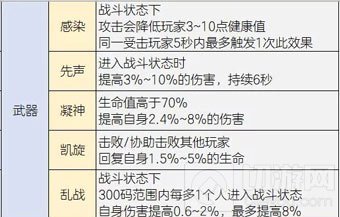 在选择上,一般玩家建议武器选择“先声“,前6秒的战斗状态提高3%-10%的伤害,相当拥有一个低级武器配件的伤害提升,在对战的时候可以先发制人,打出高伤害。