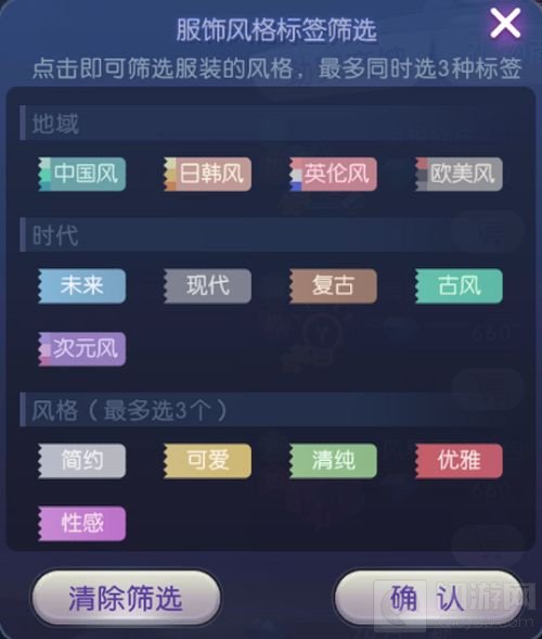 《劲舞团》手游“风格筛选”界面(以游戏实际更新为准)