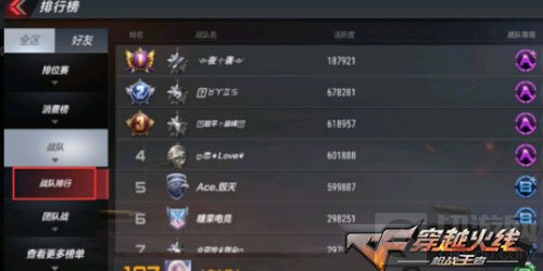 在战队排行和大厅排行榜中,增加战区排行。