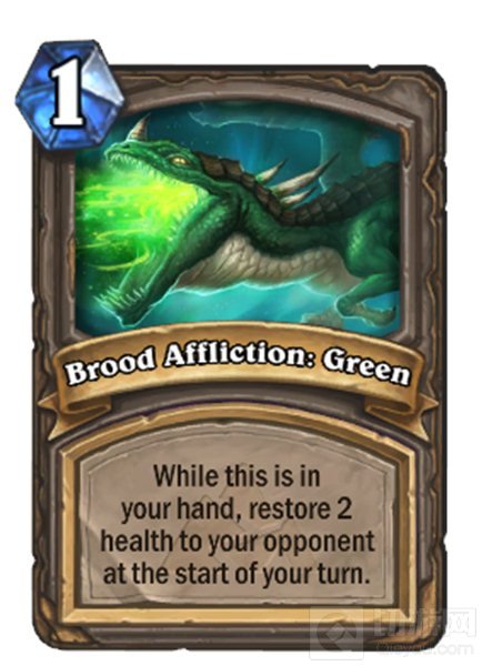 龙血之痛,绿:当这张卡牌在你的手牌时,在你的回合开始时给对方治疗2点生命值。英雄模式下,治疗6点生命值。