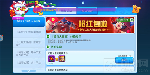 参与红包大作战即可兑换所需物品,收集的红包越多兑换的奖品越丰厚~玩家可以通过活动兑换觉醒小包、宠物阿努卡班的碎片、夺宝菇、福到红包、碧绿神印宝箱、深蓝神印宝箱,还可以兑换英雄“卡卡班”!活动时间从即日起一直到2月14日,时间非常宽裕,绝对可以获取自己喜欢的物品。