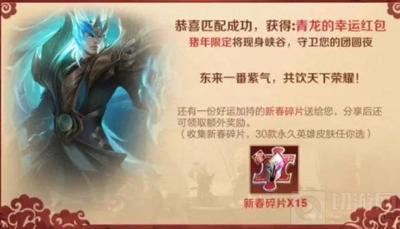2、匹配成功后领取15个新春碎片,这个新春碎片长得可像皮肤碎片了,大家可别搞混了,小编就上当了。