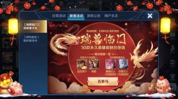 参与途径:活动页面——新春活动——【瑞兽临门】送新春大礼