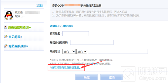 4)对于一些没有身份证的玩家,例如我们的港澳台同胞们,也可以选择使用其他有效身份证件注册(如图)