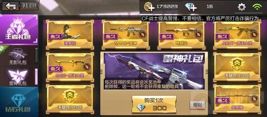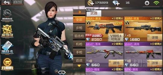 分期购:V3玩家可以分期购买AWM-天龙,V4玩家可以分期购买M4A1-黑龙。玩家每月存到的钻石便可以完成神器的分期付款,所以V3-V4玩家三个月便可以分期获得永久的神器了。