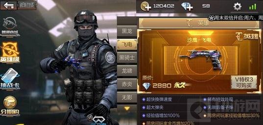黑市:黑市内出现的英雄武器购买起来还是很划算的,黑市中出现打折的英雄武器有暗杀星、汤姆逊-烈龙、RPK-盘龙、屠龙、AWM-天龙。对于辛苦存钻的平民玩家来说,黑市中的神器购买起来还是非常划算的。
