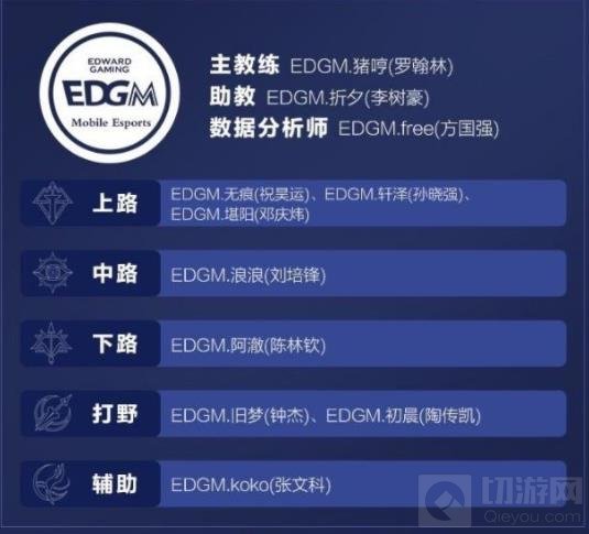 在转会期,阿澈的挂牌让很多人担心不已,但是最后也是有惊无险,阿澈依然留在了EDGM,而这也意味着,EDGM下个赛季极有可能维持原有的阵容不变,一家人整整齐齐的也少了很多磨合问题。而十人大名单上,EDGM也是只有八个人,其中辅助和中路都是没有替补的。下路也是没有替补,但是上路有三个人,双边可以互相补位。而这也可以看出,在新赛季,EDGM的首发阵容基本上可以确定的是无痕、浪浪、阿澈、初晨、koko,这也是EDGM的最强战力。这套阵容从2018年春季赛开始到现在并肩作战了很多场,相互之间的默契也是无人能及的,相对于其他队伍来说,这也是一个优势。