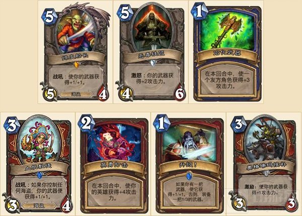 首先我们看看标准模式中哪些卡牌能够强化武器攻击力的。