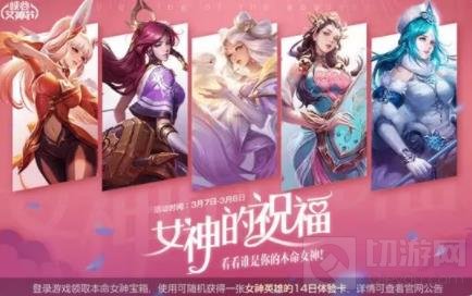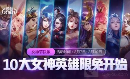 女神英雄/皮肤免费体验,3月5日~3月12日使用指定女英雄完成任务,可获得女英雄体验卡(3天)+伴身皮肤体验卡(3天)。3月7日登录可领取一张女神英雄体验卡(14天),连续登录6天可领取女英雄伴身皮肤体验卡(14天),并开启十大女神英雄限免活动,女神英雄包括下图这十位: