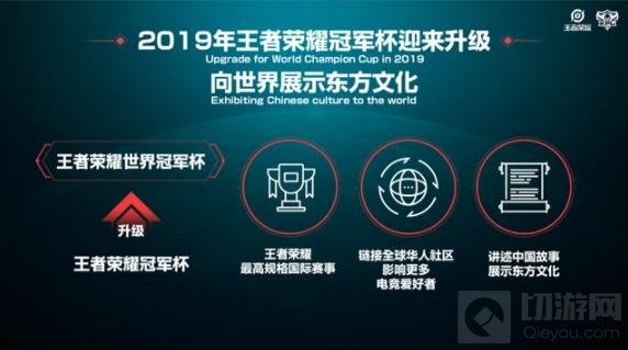 张易加表示,王者荣耀冠军杯将于2019年6月正式升级为“王者荣耀世界冠军杯”,这是自2016年首届举办以来的第3次变化,前两次分别是2018年8月首次尝试冠军杯国际邀请赛,2019年1月开始推行冬季冠军杯。冠军杯系列的升级,不仅完善了联赛到杯赛的双格局赛事体系,更重要的是践行KPL国际化之路——以《王者荣耀》的中国文化元素为依托,以高品质的赛事内容为核心,连接全球王者荣耀观赛用户,向世界传递中国文化。
