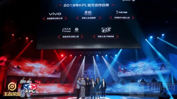 最后,发布会公布了2019年KPL商业体系的新格局,年度赞助商数量由2018年的3家上升至6家。发布会公布了其中5家,分别是vivo、上汽大众、5无糖口香糖,黑鲸HLA JEANS、统一冰红茶。5位赞助商代表分别上台发言。