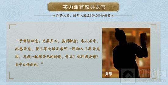 腾龙出海,将去何方?除了充满悬念又让人为之激动的主题和活动内容之外,即将倾情加盟大话新的年度实力派首席寻龙官的身份也引发了大家的猜想。从他的神秘剪影来看,似乎是个儒雅书生,手上还拿着书册一卷,让人不禁浮想联翩,又让人充满期待。他是文化人,又是实力派,足以承担起此次寻龙活动的重任,还将带领三界兄弟共同并肩踏上寻龙之旅。他的身份,也将在未来为您揭晓!