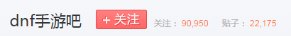 截止6月15日晚DNF手游吧关注数已经达到9万