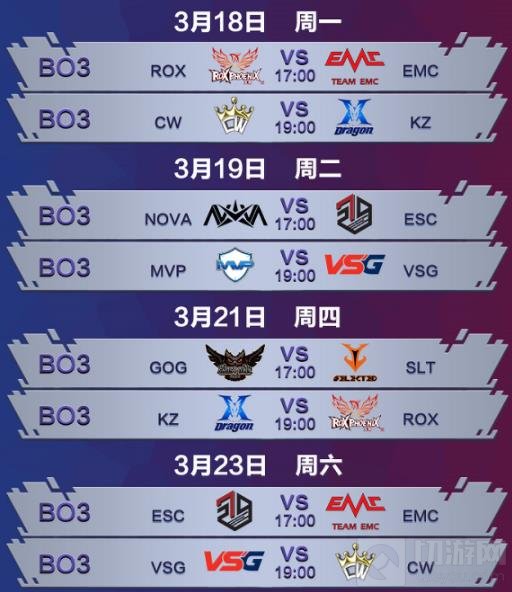 另一场颇具看点的比赛由EMC和ROX为您奉上。两队在冬冠冠杯由于分组原因未能碰面,也为本次揭幕战留下了悬念。本赛季,两队都在选手池进行了引援和补强,两队队伍阵容的轮换和场上教练的临场应变都将会为比赛结局买下关键的伏笔!