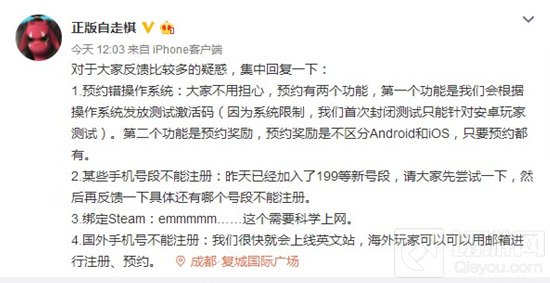 昨日《自走棋》官方手游正式公布,官网开启预约,但是有些玩家在预约时却出现了手机号段不能注册、无法绑定steam等问题。今日,《自走棋》官方微博发博答疑: