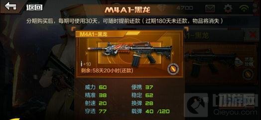 M4A1-黑龙入手门槛低,可进行分期付款一共分为三期: