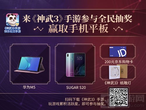 除了新武器、新头像、新玩法等一系列精彩内容持续解锁外,《神武3》手游还为诸位少侠奉上持续30天、最多可享受6次抽奖机会的“全民抽奖”特别定制活动——3月30日至4月30日,“全民抽奖”将持续送出华为M5、sugar s20、京东卡、纸雕灯、嵩鼠公仔、桃子公仔、神牛公仔等实物好礼,为支持和喜爱《神武3》手游的玩家们带来更多欢乐和感动。