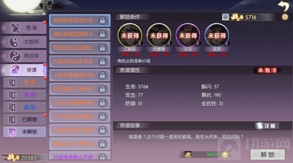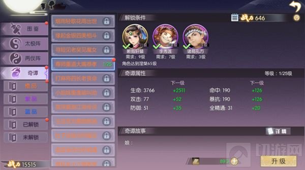 1、已经解锁后的奇谭可以进行升级,未解锁奇谭不可升级;