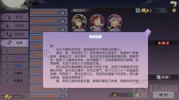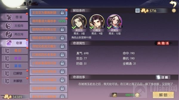 2、集齐指定侠影,并且对应侠影达到指定等级,即可使用道具【江湖传闻】解锁相应奇谭;