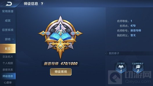 以上就是我给大家带来关于王者荣耀获得名师点的全部内容,更多精彩,请持续关注切游网。