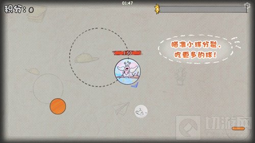 手速大比拼挑战中,我们要做的就是通过不停的分裂来吃小球。