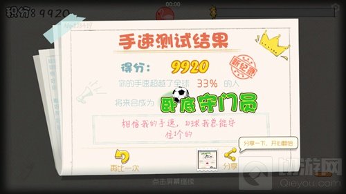 在挑战的时候,大家可以暂时忽略掉“精准性”的思维,以“快”为准,有时候不需要考虑是否可以吃到小球、是否距离足够,我们只管一直不停的点击“分裂”按钮即可,系统会自动在我们周围生成小球,所以有较大概率每一次分裂都可以吃到小球,这样就能一直活下去了。