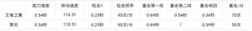 ◆王者之击的拔刀速度仅需0.54秒,比屠龙,王者之锋等英雄近战都要快。移动速度方面,王者之击拥有急行军属性,移速与目前主流英雄近战一致。王者之击的轻击数据同擎天觉醒一致。重击方面,王者之击拥有二段重击,第一段重击打出速度同擎天觉醒一致,第二段比第一段要快了很多,非常适合第一段打空用来补刀,另外王者之击的重击收回速度也比擎天觉醒快了一些,这样自己的防守空档期更短。经过测试,王者之击的重击一分钟可以打出75次,而擎天觉醒只有55次,差距非常大,所以说即使是无脑按住重击不松手,使用王者之击你都能在刀战大杀四方。