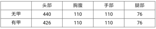 小结:98K的伤害比AWM低一些,AWM的胸腹伤害为120