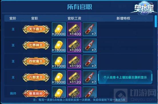 官职系统作为一个全新的功能将在今天同步上线,小奥拉可通过累积功勋解锁官职称号,每解锁一个称号都能获得相对应的奖励,每周系统会按照官职发放官职薪酬。官职等级越高,越能展现小奥拉的实力和贡献,到达一定的官职等级还会有特权奖励。