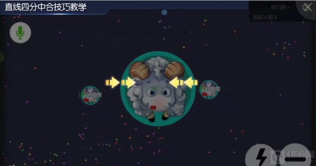向队友方向快速按下分裂键,分裂成四个球体。然后点击屏幕,这个时候本体他会停止不动。