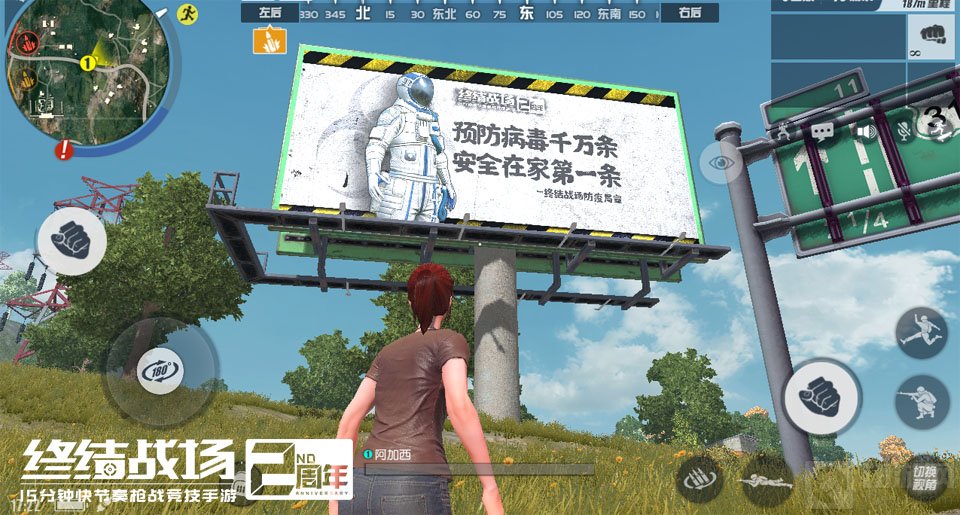在游戏地图中,玩家还可以看到广告牌内容已经替换成防疫信息,准备区更是可以选择播放防疫宣传内容。