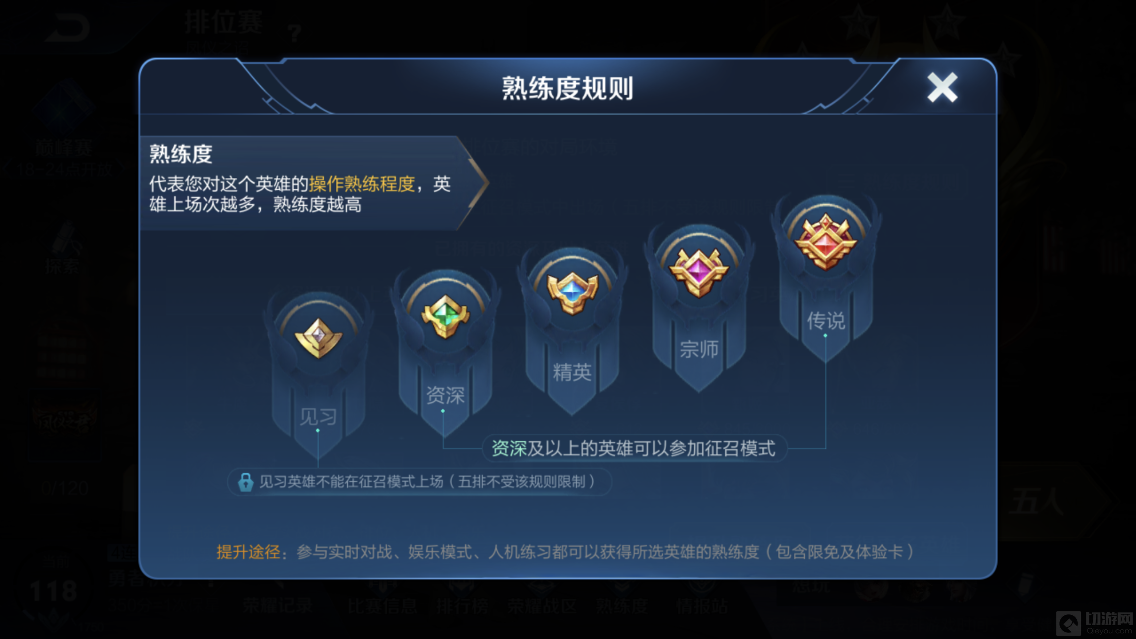 以上就是小编给大家带来的王者荣耀当中的排位赛硬性熟练度要求介绍,更多精彩资讯,请请持续关注切游网。