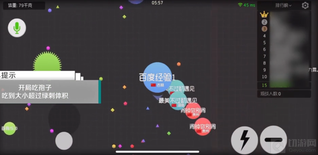 1、首先开局吃孢子,吃到大小超过绿刺体积,寻找人少的地方进行扎刺。