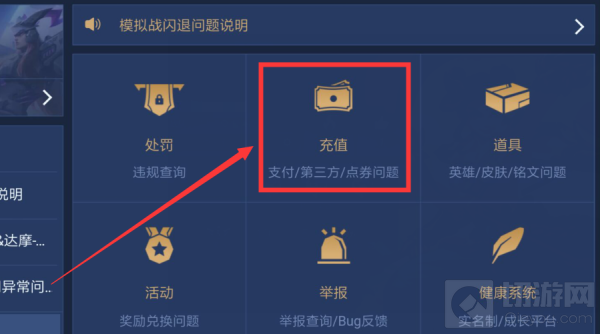 3、在帮助页面中,点击“充值”图标。