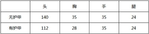 胸部伤害x4即为头部伤害,打中护甲的伤害须在此基础上另外x0.8 。