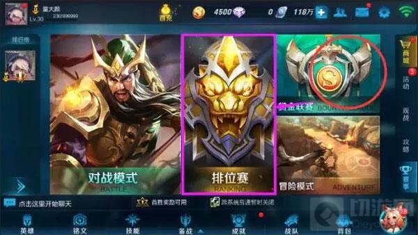 调整后,“排位赛”的入口由原来的右上角移到了中间的位置(原来“冒险模式”的入口位置)。