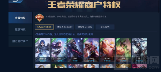 在金牌特权门店,召唤师可免费享用89款英雄、89款皮肤、8套满级铭文~