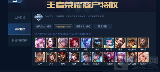 在银牌特权门店,召唤师可免费享用85款英雄、79款皮肤、2套满级铭文~