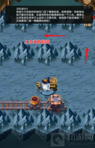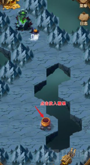 挑战后,来到第二个南瓜糖果罐的位置,移动到右侧后,放入糖果。