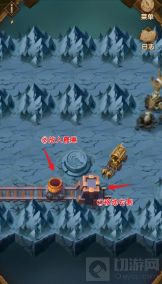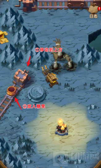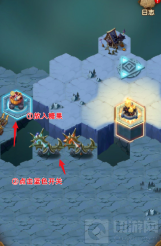 点击后,选择蓝色机关上方的糖果罐,放入糖果。