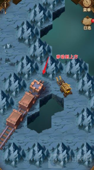 挑战上方道路敌人后,将轨道机关移动到上方。