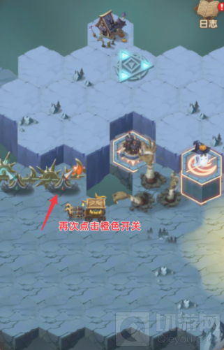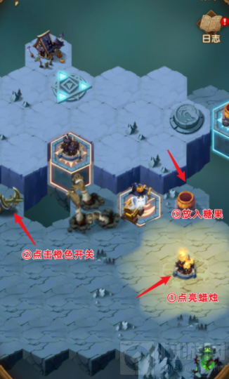 之后,点击蓝色机关,然后点燃蜡烛,最后,再点击橙色开关升起蜡烛。